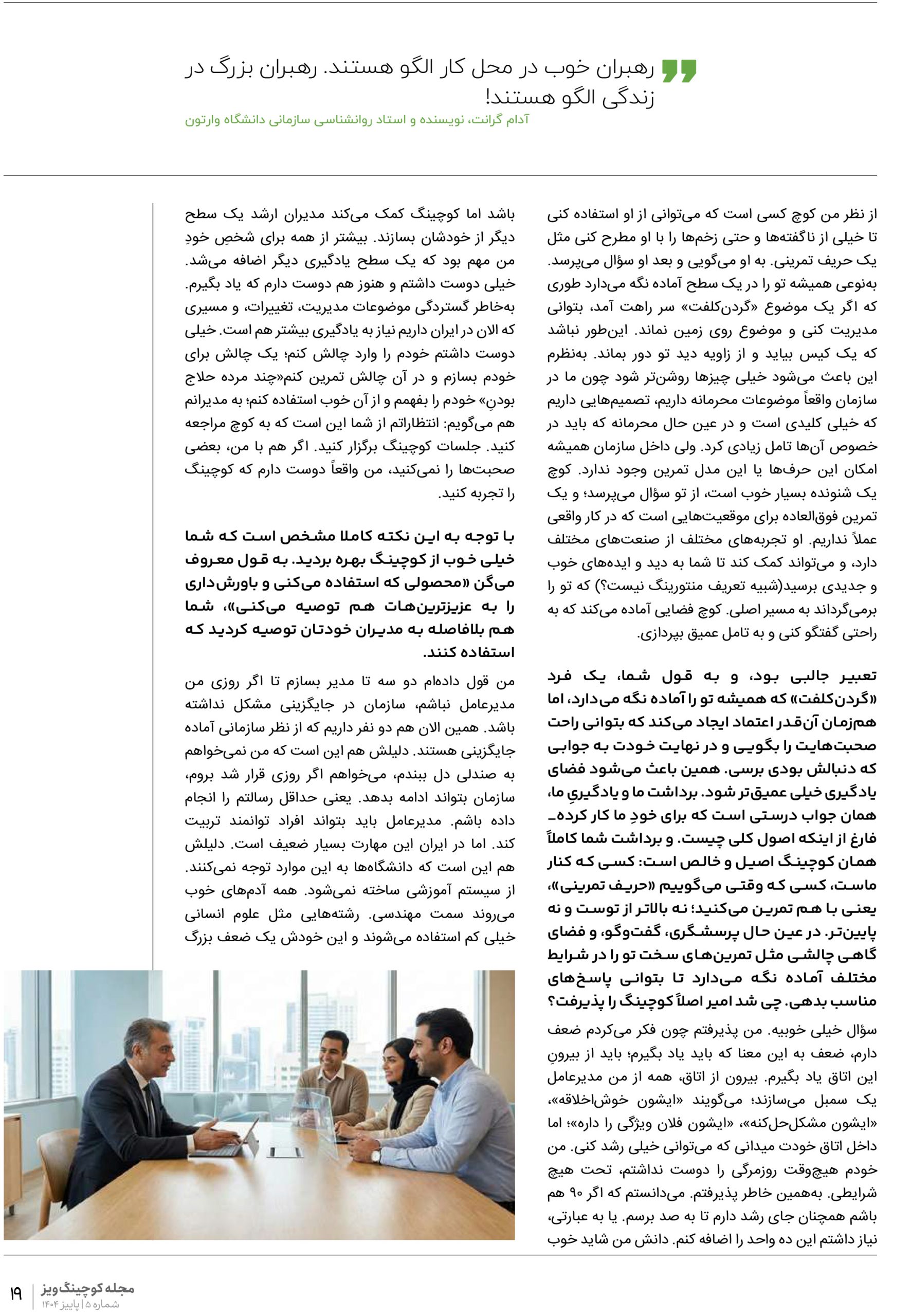 میتوانید از اینجا به صفحه مجلات کوچینگویز خاورمیانه بروید و فایل کامل مجله را دریافت کنید.